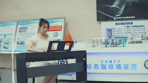 “我和我的祖國一刻也不能分割,無論我走到哪里,都流出一首贊歌。”來自科學(xué)島歌王大賽的四名歌手從實驗大廳緩緩走出,飽含熱情的唱響《我和我的祖國》。悅耳的鋼琴聲從穩(wěn)態(tài)強磁場裝置傳來,兩大科學(xué)裝置遙相呼應(yīng),共同演奏科學(xué)報國的青春頌歌。