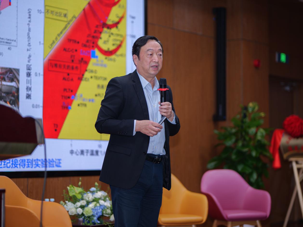 李建剛院士以“磁約束研究現狀及未來發展的幾個關鍵問題”為主題,帶來了一場深入淺出的學術報告。報告回顧了磁約束核聚變技術的基本原理及其在人類能源史上的重要地位,詳細介紹了磁約束核聚變技術的最新研究現狀,并重點探討了未來發展的幾個關鍵問題。他強調磁約束核聚變是一個充滿挑戰和機遇的領域,它需要我們一代又一代人的不懈努力和持續創新。希望研究生們以及青年科研人員能夠珍惜這個時代的機遇,勇于擔當起科學研究的重任。交流互動環節中,現場的學生們抓住難得的機會,紛紛向院士提出自己的疑問和見解。院士耐心傾聽,一一解答,現場氣氛熱烈而融洽。