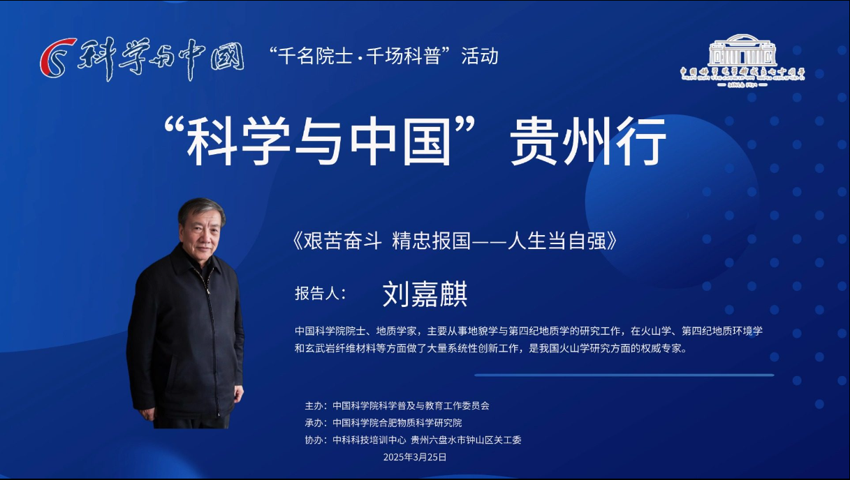 3月25日,由中國科學院學部局科學普及與教育工作委員會主辦,中國科學院合肥物質科學研究院承辦,中科科培中心、六盤水市鐘山區關工委協辦,合肥現代科技館組織的“科學與中國”貴州行——“千名院士·千場科普”行動在六盤水鐘山區實驗二小舉行,該校四五六年級共計2100多名學生參與活動。